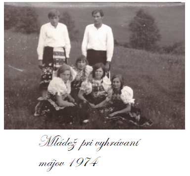 V týchto rokoch sa ešte udržiavali spoločenské akcie – kosenie a hrabanie sena, mlátenie, stavanie májov, páračky, svadby.. Tieto akcie sa nezaobišli bez spevu a zábavy. Spevom chodili šichníčky (ženy, čo pracovali v lese), keď išli peši domov z práce. Keďže neboli autá, vozilo sa na vyzdobených vozíkoch, na koníkoch boli tiež vyšívané uteráky.