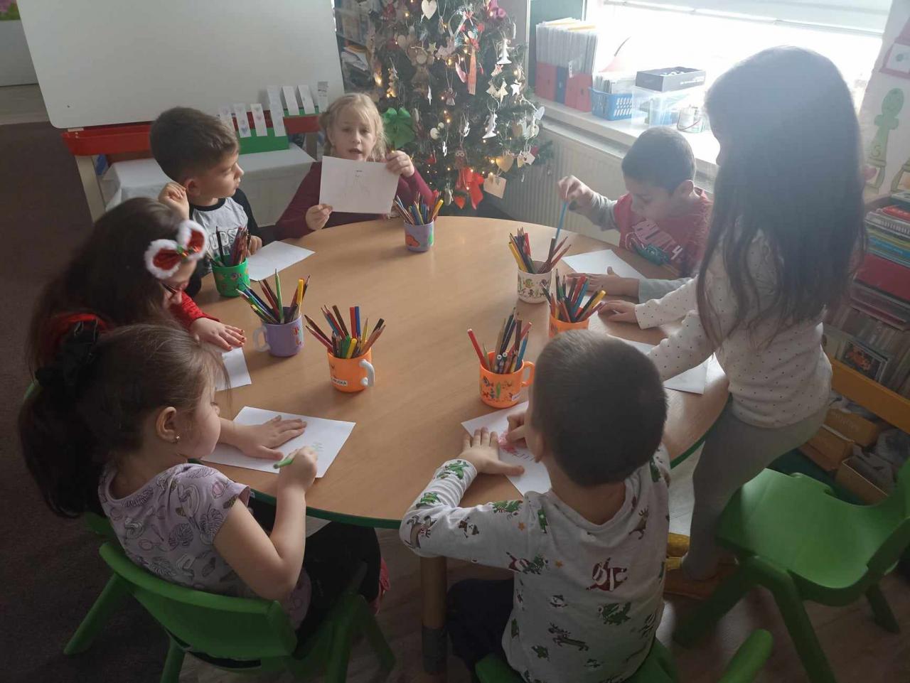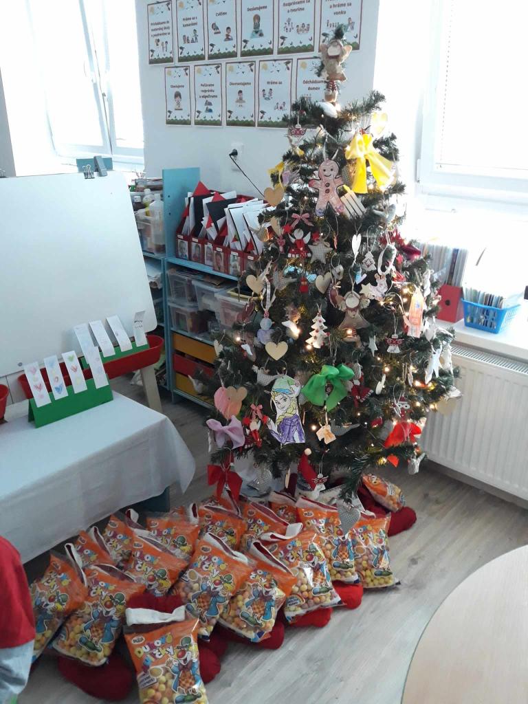 Na deň Sv. Mikuláša sa deťom Mikuláš prihovoril cez interaktívnu tabuľu, pani učiteľky rozdali detičkám balíčky, kt. im Mikuláš nechal pod vianočným stromčekom a potom si deti spoločne zatancovali a nakreslili obrázky pre Mikuláša.