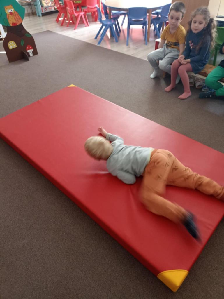 Aj naše sovičky dobre vedia, že pohyb je pre naše zdravie veľmi dôležití, tak si jeden októbrový deň takto pekne skúšali plazenie.