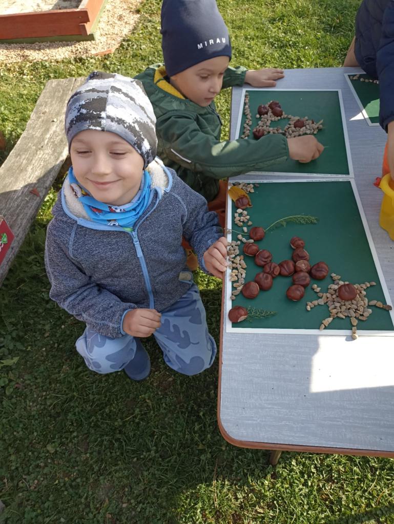 Posledné teplejšie jesenné dni využili naše sovičky aj na jesenné tvorenie z prírodných materiálov v školskej záhrade.